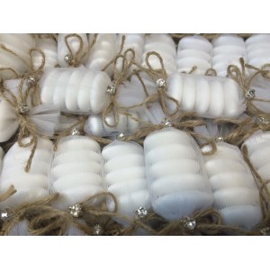 Στο κατάστημα Ράβε ξήλωνε, μπορείτε να βρείτε ό,τι υλικό επιθυμείτε για να συνθέσετε την μπομπονιέρα των ονείρων σας. Με τη δική μας βοήθεια, την ποικιλία των χρωμάτων και των υλικών, όπως τούλι, δαντέλα, οργάντζα, ταφτά, σατέν, δίχτυ και άλλα πολλά,μα πάντα με το δικό σας γούστο θα έχετε το ιδανικό αποτέλεσμα στην πιο σημαντική ημέρα της κοινής σας ζωής.