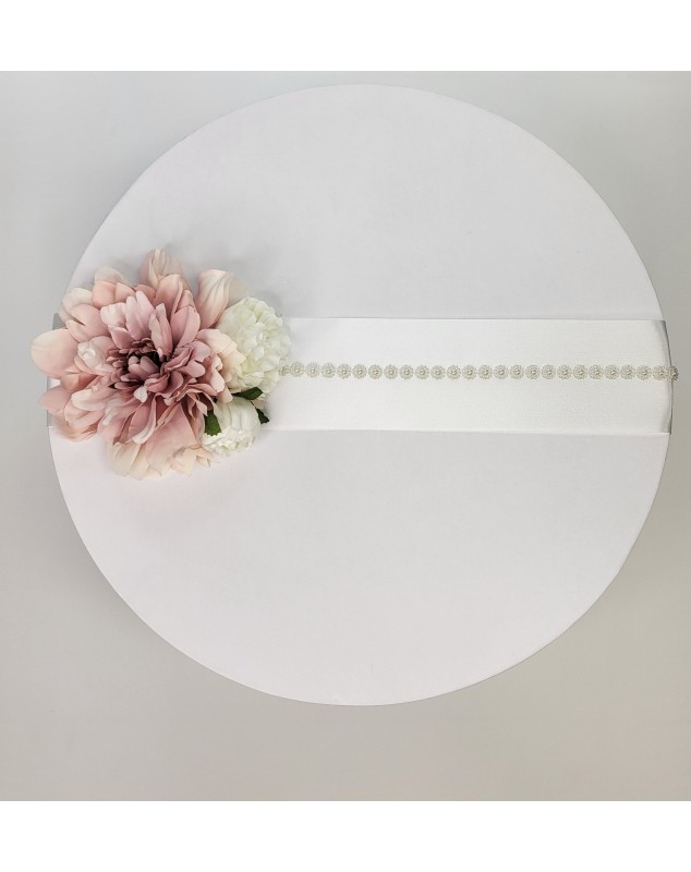 στο καπάκι σατέν κορδέλα με πέρλα-μαργαριτάρι,