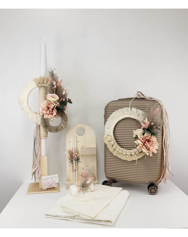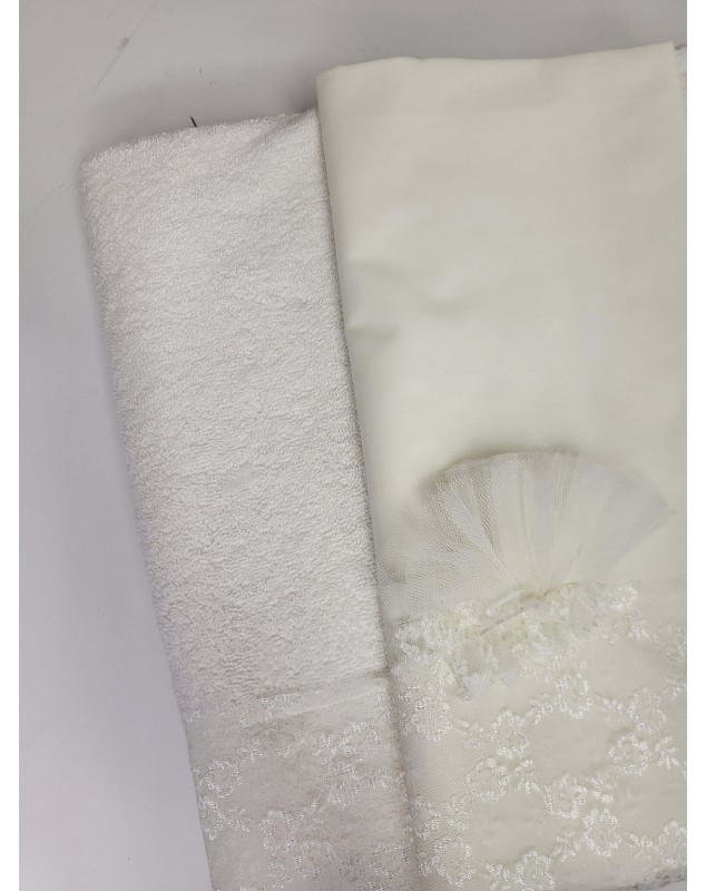 4. Λαδοσέτ (Μπουκαλάκι λαδιού, πετσέτα χεριών για τον ιερέα, 3 μικρά κεράκια κολυμπήθρας και σαπουνάκι.)