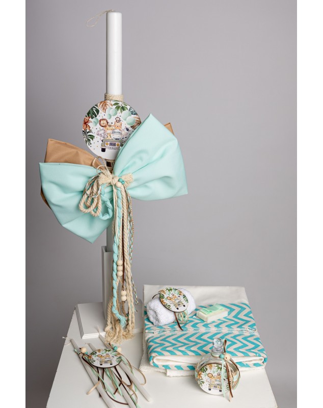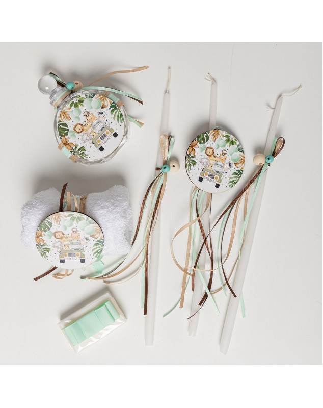 Λαδοσέτ (Μπουκαλάκι λαδιού, πετσέτα χεριών για τον ιερέα, 3 μικρά κεράκια κολυμπήθρας και σαπουνάκι.)