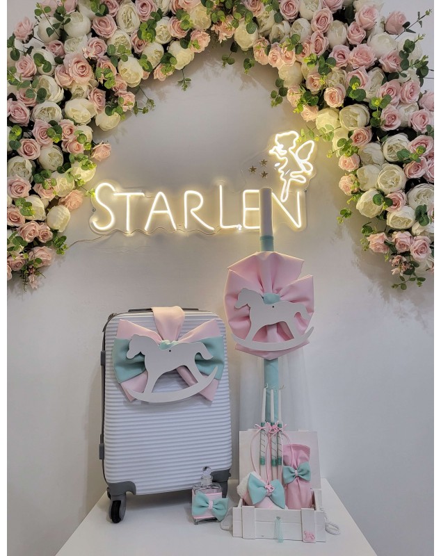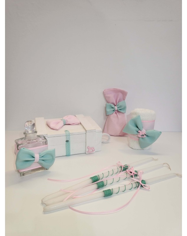 Λαδοσέτ (Μπουκαλάκι λαδιού, πετσέτα χεριών για τον ιερέα, 3 μικρά κεράκια κολυμπήθρας και σαπουνάκι.)